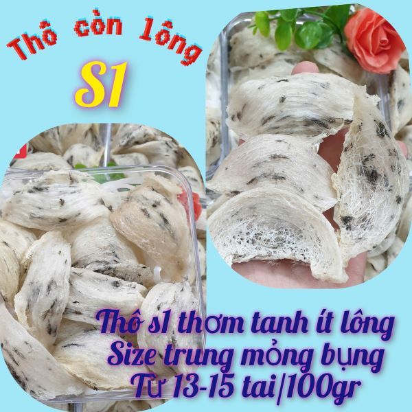 YẾN THÔ S1 : nhiều tai tương đối ít lông mỏng bụng nhiều sợi, không phân rêu, hàng mỏng bụng nhặt nhanh hơn các loại bụng to ít sợi .